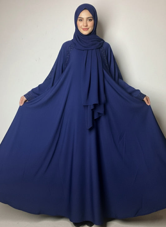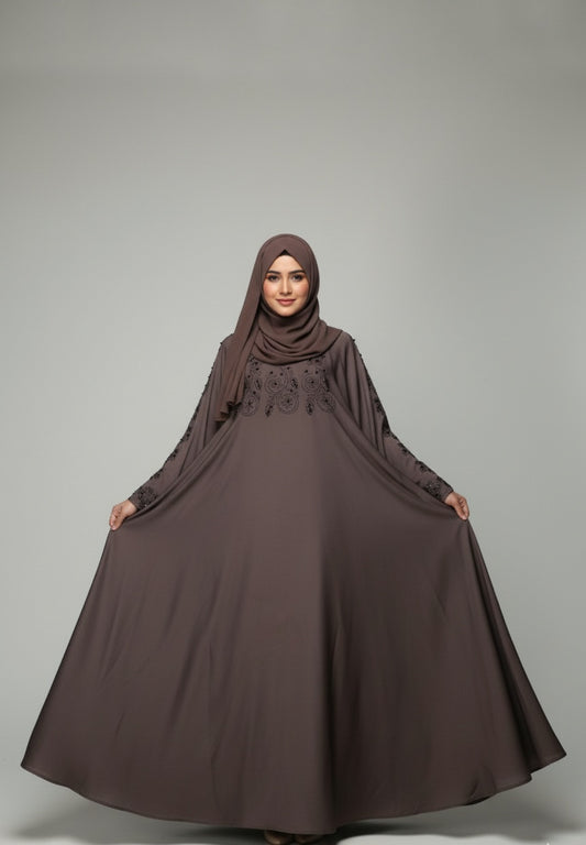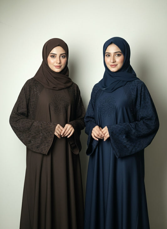 Modern Sparkle-Flower Embellished Abaya with free hijab cap