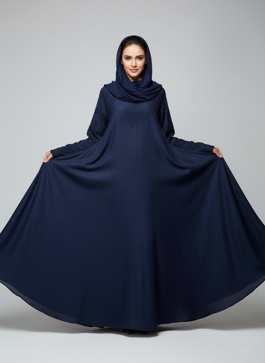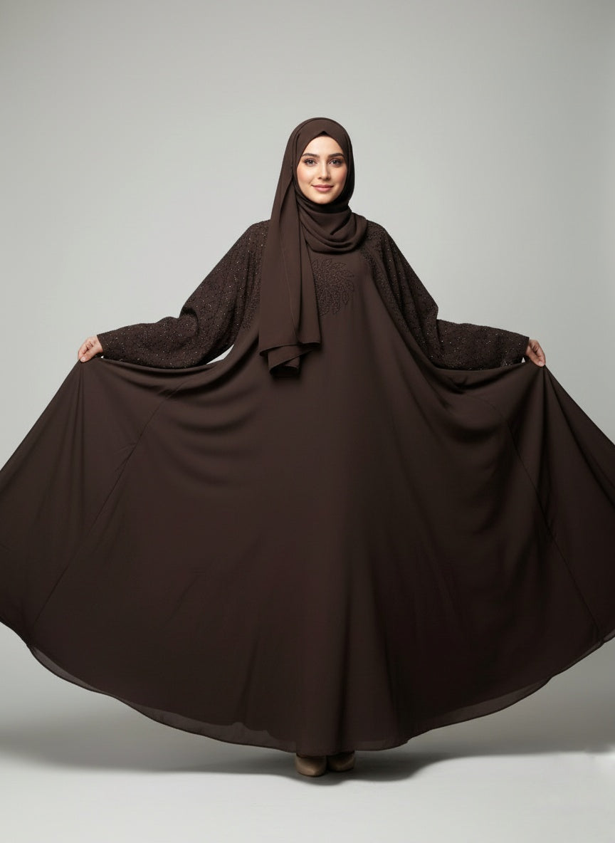 The Modern Sparkle-Flower Embellished Abaya combines traditional elegance with contemporary design through delicate floral embellishments and subtle sparkle accents. Crafted with attention to detail, this abaya offers a graceful silhouette while enhancing your presence at special occasions. Its refined decoration adds a sophisticated shimmer without overpowering, making it a distinguished choice for women seeking both modesty and modern style.